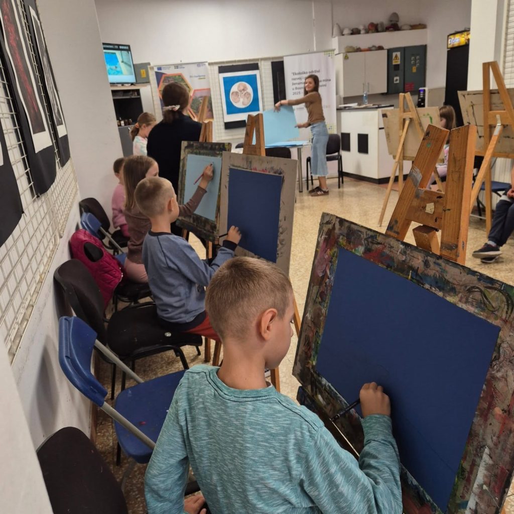 A total of 59 children participated in the art workshops, divided into four groups according to age. Through both theoretical and practical work, participants explored various painting and drawing techniques, learned about different artistic movements, developed their imagination, and discovered how to express their feelings and ideas through art in their own way. Each artwork represented a unique story that the children wanted to share with others.