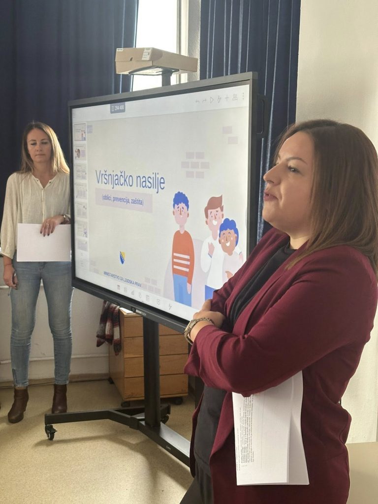 As part of the project “Hands that create, not destroy – building bridges, not walls,” the Public Elementary School “Mujaga Komadina” Mostar hosted a team from the Ministry of Human Rights and Refugees of Bosnia and Herzegovina, which conducted an interactive and educational workshop focused on preventing peer violence and vandalism in the local community.