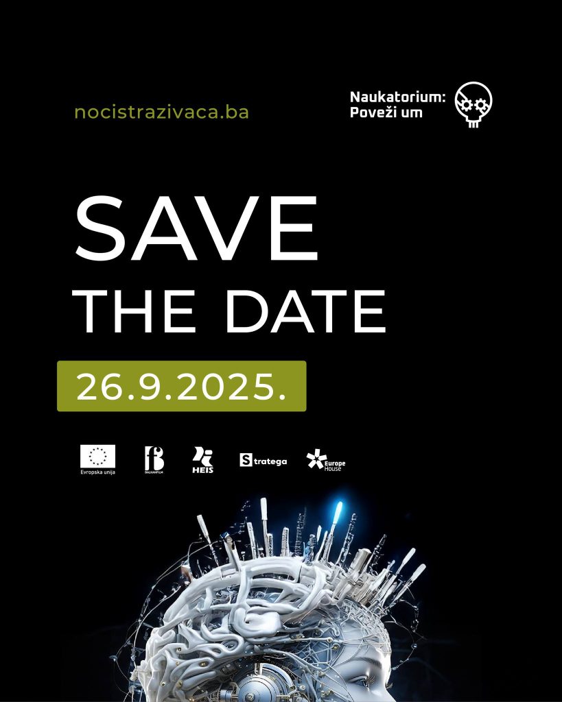 Ovaj događaj, koji se održava istovremeno u 25 zemalja i više od 400 gradova širom Evrope, nije samo noć – to je jedinstvena prilika da se istakne ključna uloga nauke u oblikovanju naše budućnosti. Pridružite nam se u proslavi povratka Evropske noći istraživača i budite dio pokreta koji promoviše nauku, njeguje inovacije i podržava naredne generacije istraživača u Bosni i Hercegovini.